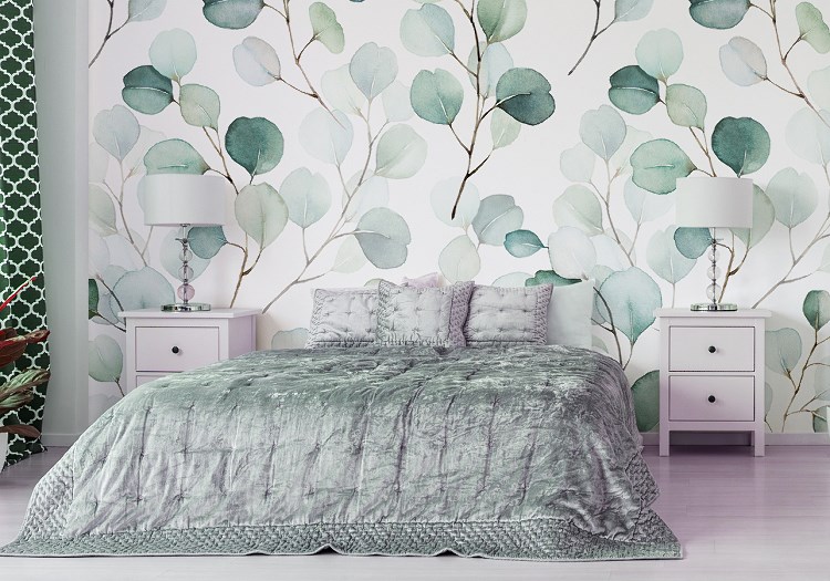 Moja propozycja to przypominająca akwarelowy malunek fototapeta. Liście zaprezentowane na pojedynczych gałązkach, które wyglądają jakby zostały namalowane na ścianie wodnymi farbami, staną się delikatnym, ale jednocześnie bardzo efektownym motywem dekoracyjnym. Taki wzór to znakomite rozwiązanie do sypialni. W tym pomieszczeniu warto zachować aranżacyjny umiar, by przestrzeń sprzyjała wypoczynkowi i ułatwiała wieczorem zasypianie. Bez względu na to, jaki widok znajduje się za oknami, w naszym wnętrzu pojawią się miłe dla oka zielone rośliny.