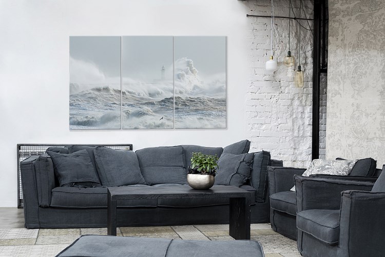Tym, na co także warto zwrócić uwagę, jest metraż pomieszczenia, jakie chcemy ozdobić ścienną dekoracją. Dlaczego jest to istotne? Bo inaczej urozmaicimy mały, a inaczej duży pokój. Płótno powinno pasować do przestrzeni w jakiej się znajdzie, by stworzyć z nią harmonijną całość. Właśnie dlatego, jeśli dysponujemy dużym czy loftowym wręcz wnętrzem, śmiało sięgnijmy po kilkuczęściowy obraz – tryptyk. Morze zaprezentowane na trzech zawieszonych obok siebie płótnach przyniesie nam zachwycający rezultat. To nie tylko sposób na to, by wypełnić dużą, pustą ścianę. To także idealny sposób na to, by naprawdę poczuć morski klimat w swoim mieszkaniu. Wielkoformatowy pejzaż da nam całkowicie inną jakość niż niewielka kompozycja. Oto, co poradził nam ekspert: