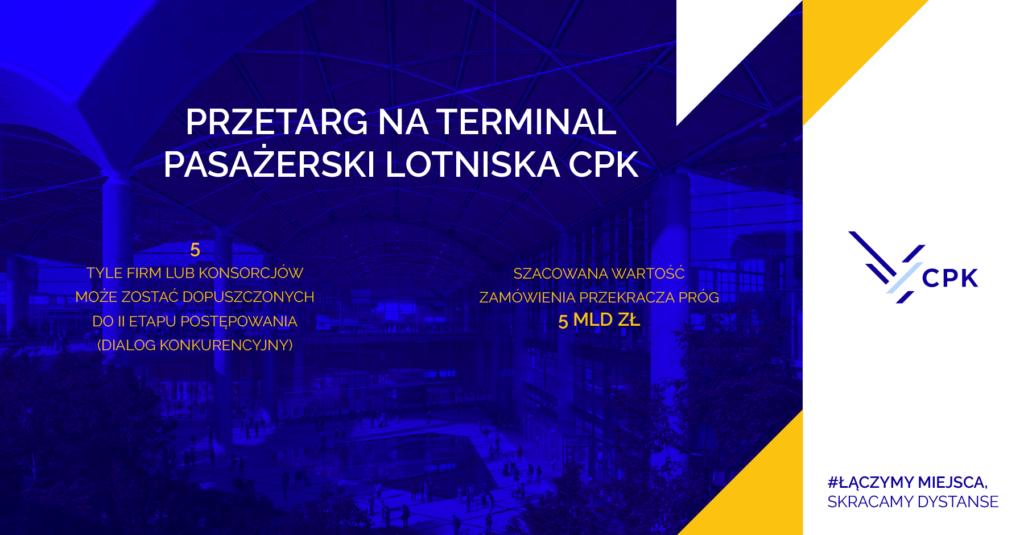 Postępowanie na wybór generalnego wykonawcy terminala pasażerskiego jest jednym z najważniejszych kontraktów budowlanych związanych z Lotniskiem CPK. Oferty można składać do 29 sierpnia tego roku. Pierwszym etapem postępowania jest składanie wniosków o dopuszczenie do udziału. Do kolejnego etapu postępowania, czyli właściwego dialogu konkurencyjnego, spółka CPK zamierza dopuścić maksymalnie pięciu oferentów.