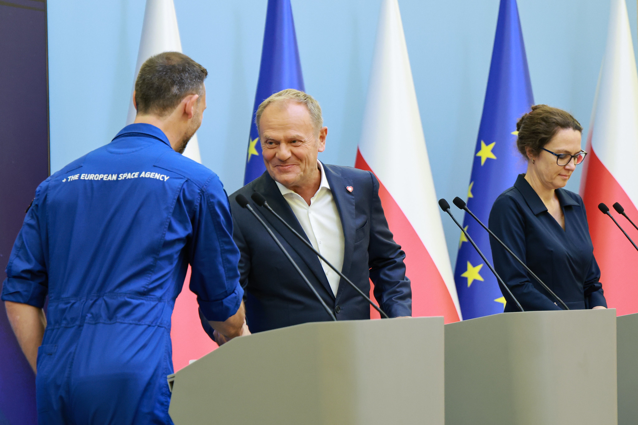 Premier Donald Tusk spotkał się w czwartek ze Sławoszem Uznańskim-Wiśniewskim – polskim astronautą, który wrócił do Polski z misji kosmicznej. Podczas wspólnego oświadczenia z astronautą oraz Prezes Polskiej Agencji Kosmicznej Premier ogłosił, że Polska rozpoczyna starania o utworzenie w kraju ośrodka Europejskiej Agencji Kosmicznej (ESA), który zajmowałby się technologiami podwójnego zastosowania – czyli takimi, które można wykorzystać zarówno w celach cywilnych, jak i wojskowych. Rząd chce wykorzystać sukces pierwszej polskiej misji naukowo-technologicznej „Ignis” realizowanej na Międzynarodowej Stacji Kosmicznej, jako impuls do rozwoju nowoczesnego sektora kosmicznego w Polsce.