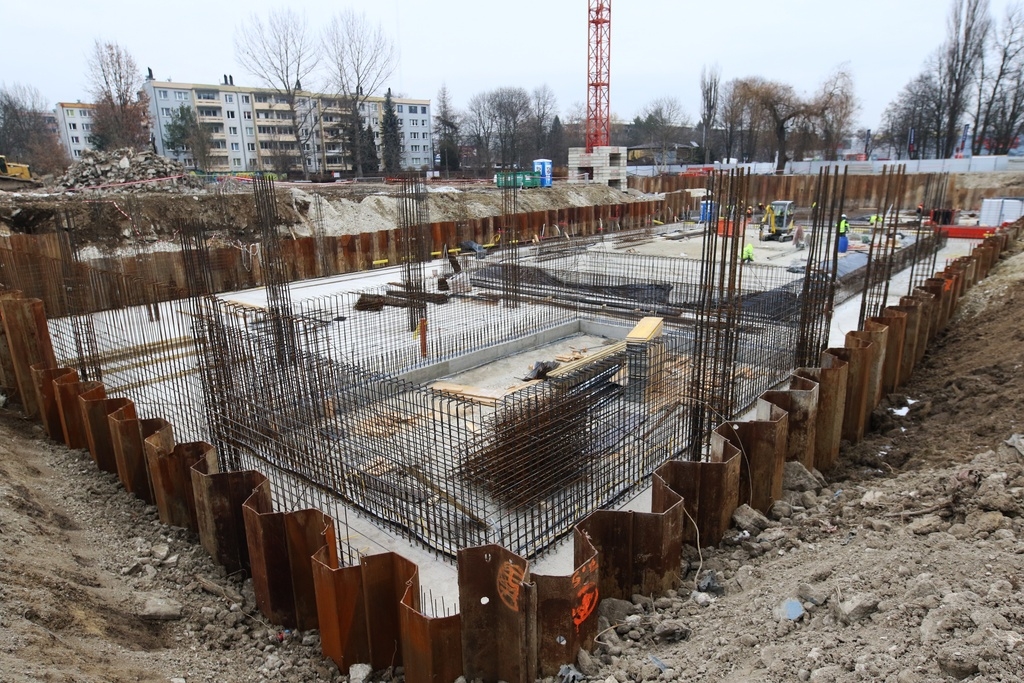 budowa krytej pływalni na terenie KS Clepardia przy ul. Mackiewicza wraz z modernizacją istniejącego kąpieliska otwartego (ul. Mackiewicza 14), termin zakończenia 12 marca 2027 r., wartość umowy 57.986.950,46 zł – trwają prace żelbetowe płyty fundamentowej, słupów i ścian w poziomie -1