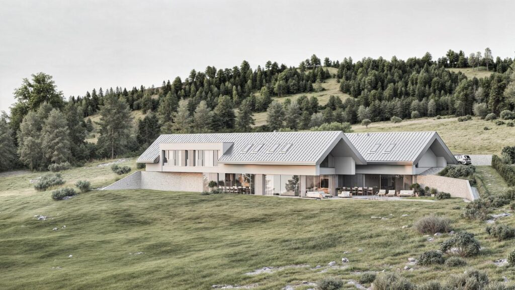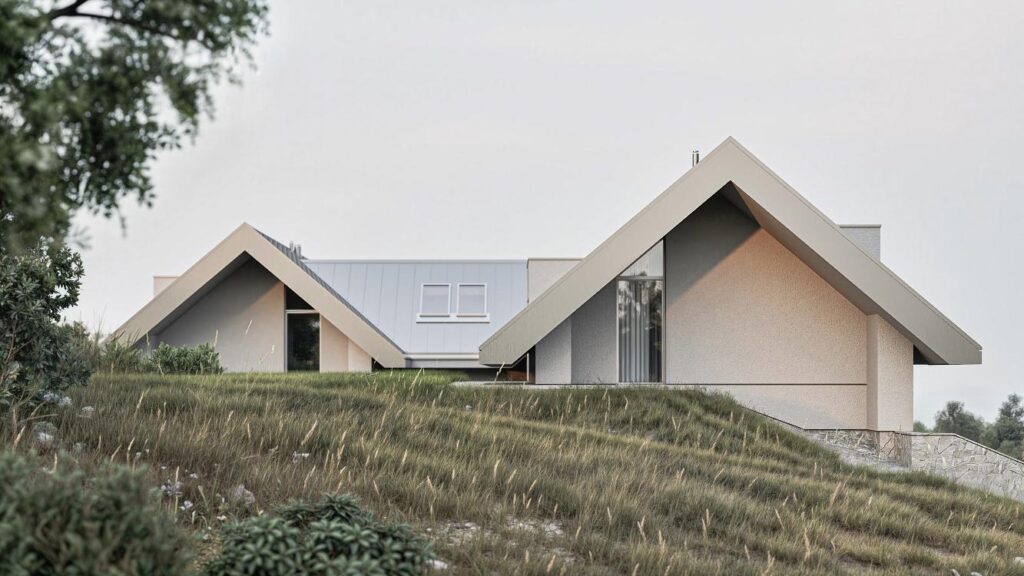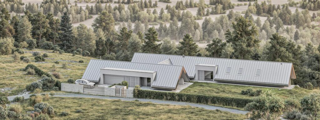 Indywidualny projekt domu wpisujący się w okolice gorlickich wzgórz. Położony w urokliwej miejscowości Zagórzany na imponującym widokowo i krajobrazowo południowo-zachodnim stoku wśród lasów, łąk i pól uprawnych. Sama działka przeznaczona pod budowę to nieco ponad 37 arów oraz dodatkowo przynależne tereny prywatnych lasów i pól poniżej, gwarantujące utrzymanie pięknego widoku bez ryzyka jego utraty w przyszłości.