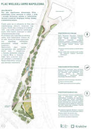 Motywem przewodnim projektu jest Wisła – rzeka, która od wieków kształtuje Kraków. To właśnie ona inspiruje wygląd przyszłego placu. Układ alejek i nawierzchni będzie nawiązywał do biegu rzeki, a otaczająca zieleń do jej brzegów. Dzięki temu przestrzeń stanie się naturalna i przyjazna. W centrum pojawią się elementy wodne, które nie tylko przypomną o bliskości rzeki, ale też poprawią komfort w upalne dni. Zieleń stanie się wizytówką tego miejsca – pojawią się drzewa, krzewy i miejsca do odpoczynku w cieniu. A wyznaczą je trzy główne strefy: