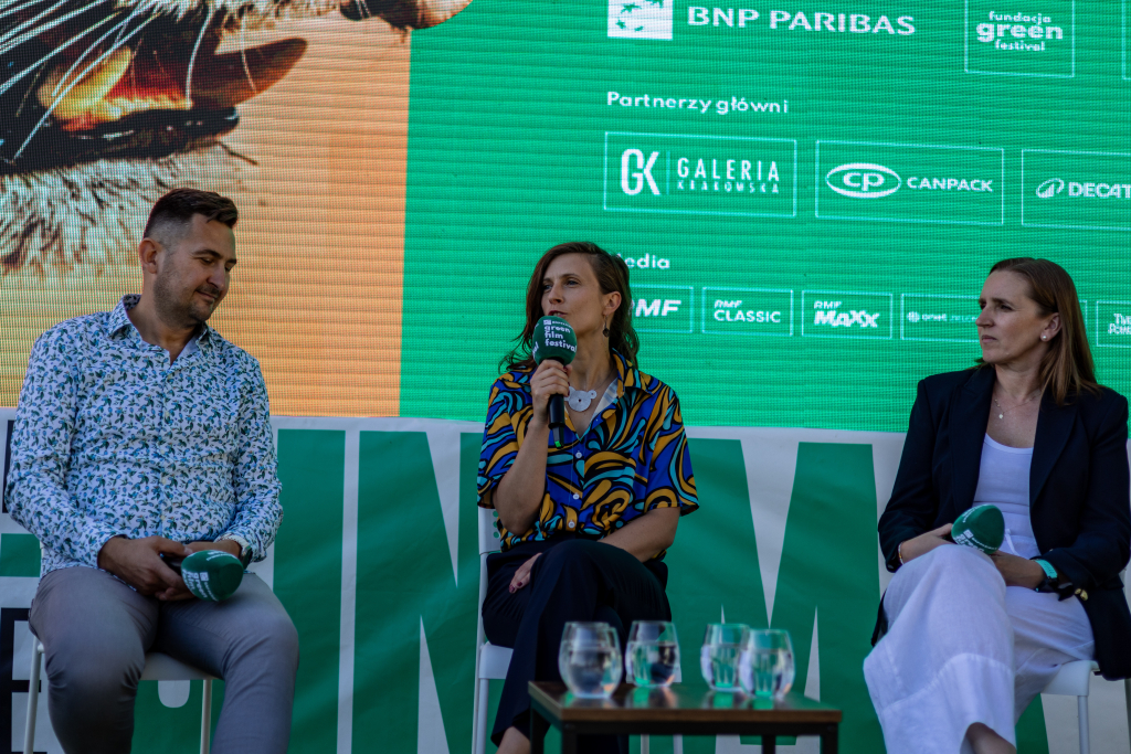 Przemysław Skowron, podcaster i radiowiec, przygotował stad-up dotyczący wszechobecnych opakowań. „Szklana pułapka. Co z tymi opakowaniami?” podejmowała myśl skupiającą się na odpowiedzialnym projektowaniu oraz wykorzystywaniu pojemników, które zużywamy na co dzień. Ostatnia prelekcja dotykała ważnego tematu, czyli wolontariatu. Magdalena Jaskółka z InPost opowiedziała o zaletach tego rodzaju pracy w prezentacji: „W paczce raźniej! O roli wolontariatu w epoce depresji klimatycznej”. Tuż po niej cała ekipa BNP Paribas Green Film Festival wbiegła na scenę, aby podziękować małym bohaterom i bohaterkom. Przedłużeniem tej wdzięczności był również przygotowany film, który pokazywał wolontariuszy podczas ich aktywności na wydarzeniu.