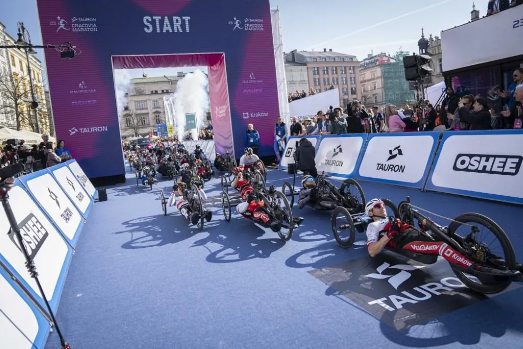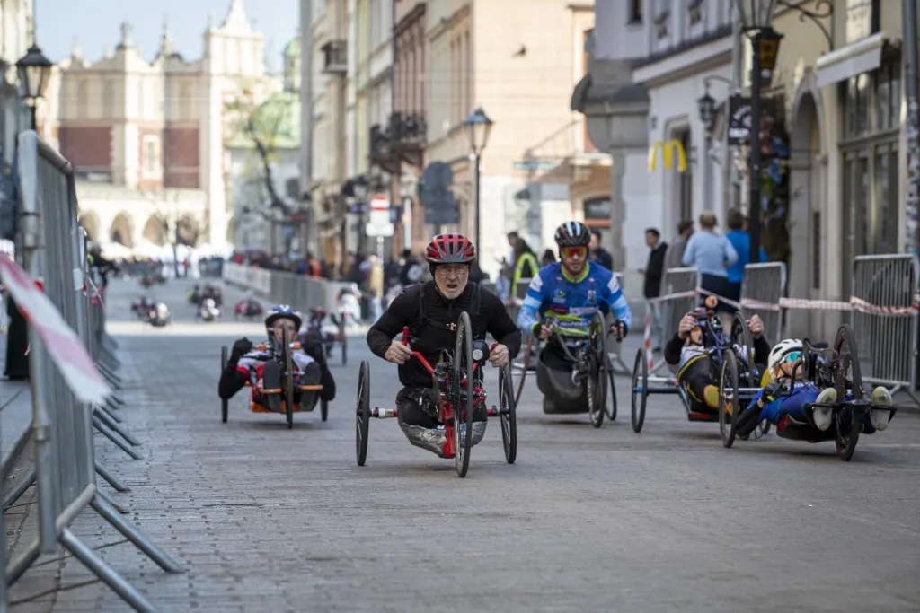 W rywalizacji zawodników z niepełnosprawnościami startujących na wózkach najszybsi okazali się Rafał Wilk (1:09:05) oraz Anna Oroszova (1:32:33).