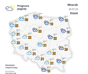 Wedle prognoz nad naszym miastem mogą wystąpić burze, którym miejscami będą towarzyszyć silne opady deszczu od 20 do 35 mm, a także porywy wiatru do 70 kilometrów na godzinę.
