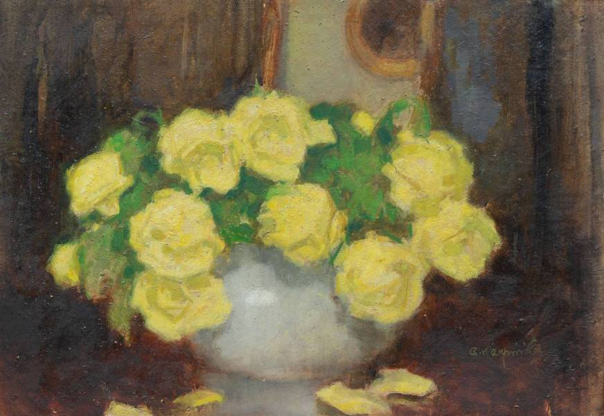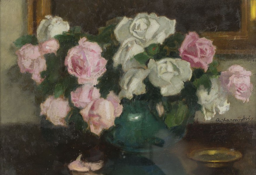 W twórczości Karpińskiego równie popularna jak portret kobiety jest martwa natura, róże przede wszystkim, najpiękniejsze te herbaciane. Ponoć nie było dnia, kiedy by malarz nie przemierzał krakowskich zaułków z bukietem róż pod pachą. Ich niezwykłe kolory, faktury – kwintesencję piękna można odnaleźć w jego obrazach z kwiatami. Malowanie róż, białych, czerwonych, ale najczęściej herbacianych pozwalało mu w sposób jeszcze atrakcyjniejszy oddać piękno portretowanych kobiet.