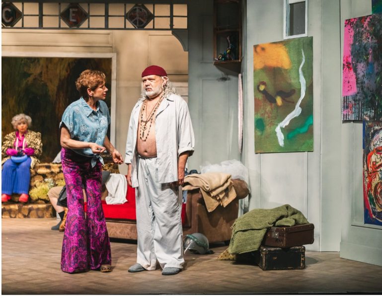 Wszystkie postacie w tym dramacie są przerysowane, osadzone w przestrzeni, gdzie stare miesza się z niepotrzebnym. W tej kakofonii, katafalk sąsiaduje ze sztuką nowoczesną na ścianach, a rodowe szable z hipisowskimi gadżetami.