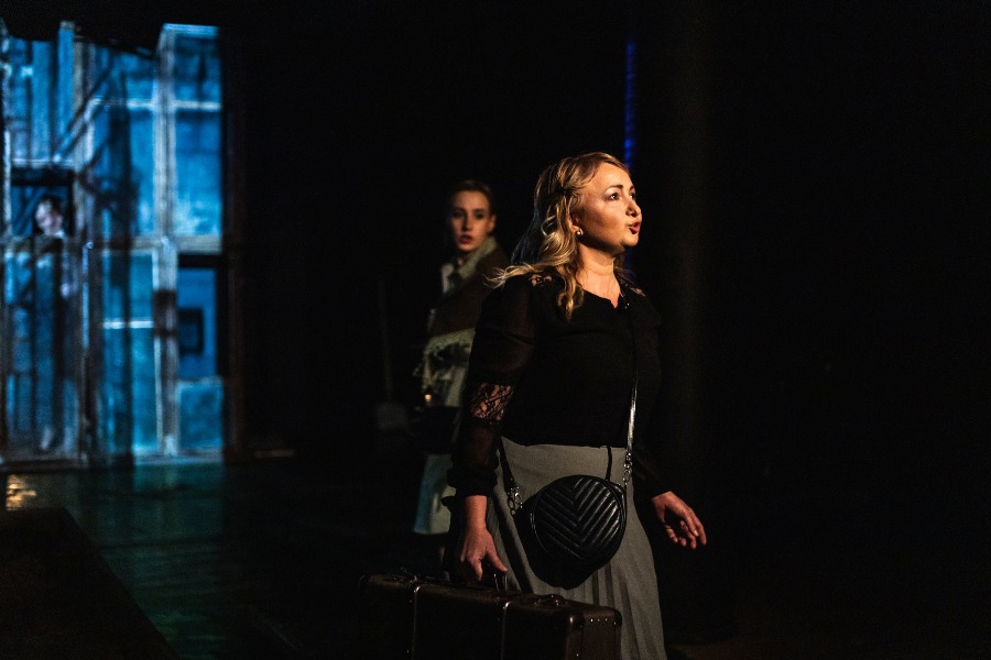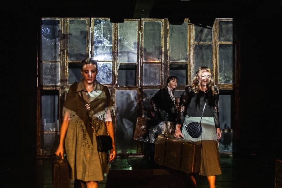 Jest jeszcze jeden poruszający, ale przepiękny element scenografii – szklana ściana pamięci, z niekiedy brudnymi, albo wybitymi szybami, która jest niczym przejście ze świata żywych do umarłych. Można do niej zaglądać, można się z niej wychylać, albo można do niej przypiąć kolejne fotografie, jedyne ślady pamięci. Jak choćby te z historii rodzinnych Iwony Błądzińskiej i jej prababci, która w czasie pacyfikacji Staroniwy, jednej z najstarszych dzielnic Rzeszowa, cieszyła się z ocalałego życia męża i rozpaczała po stracie brata.