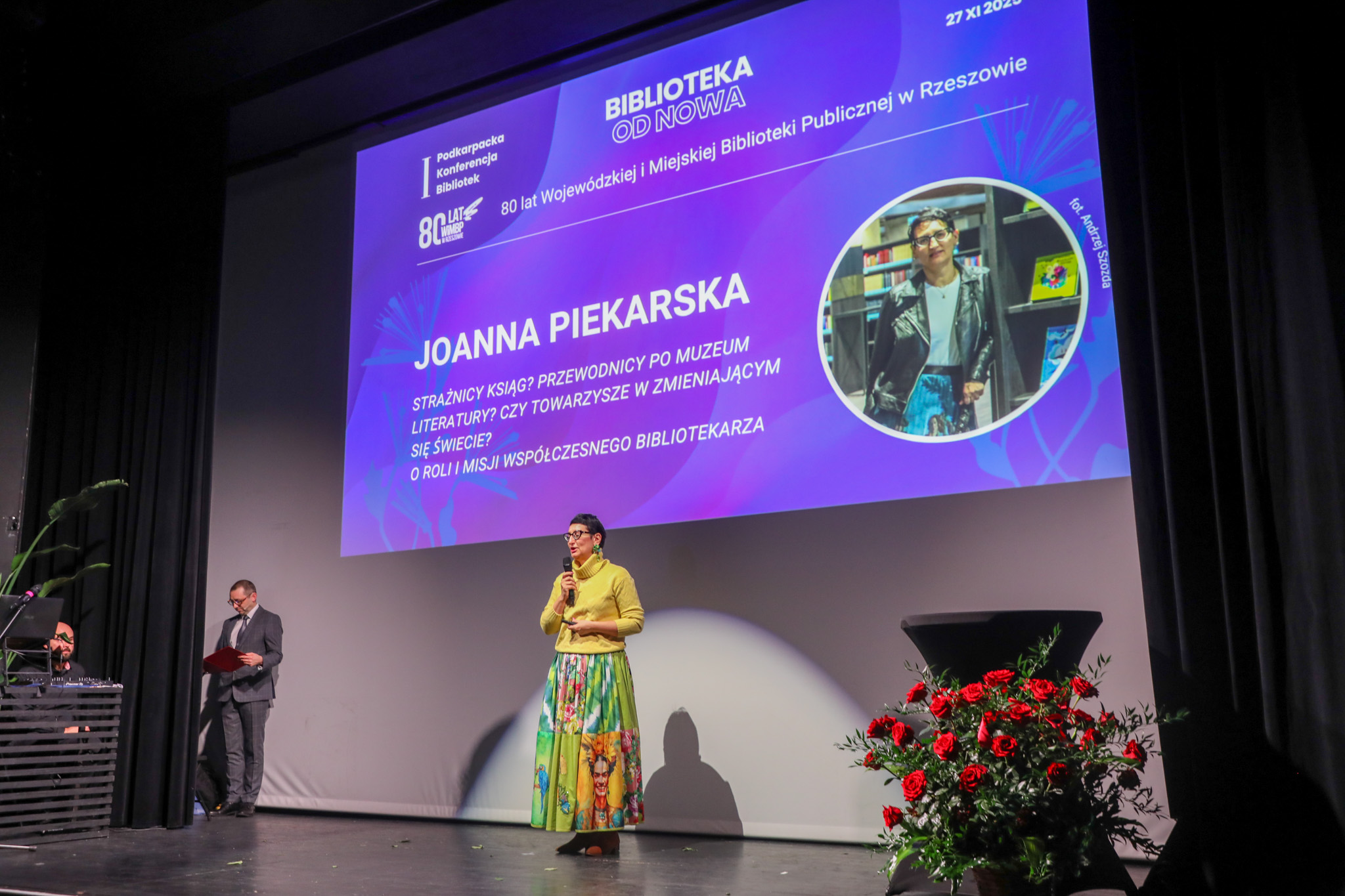 Joanny Piekarskiej pt. „Strażnicy ksiąg? Przewodnicy po Muzeum Literatury? Czy towarzysze w zmieniającym się świecie? O roli i misji współczesnego bibliotekarza” – wystąpienia stawiającego kluczowe pytanie o współczesną misję bibliotekarzy.