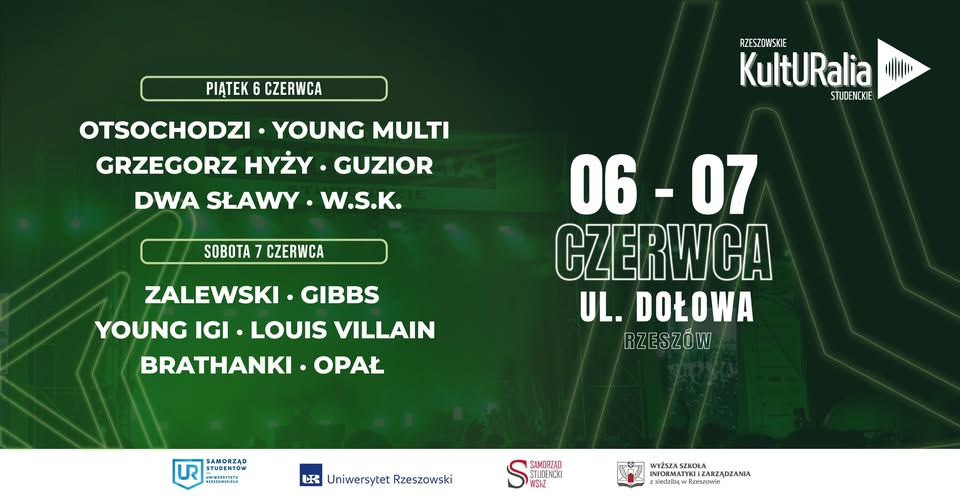 XIII Rzeszowskie KultURalia Studenckie 2025 to przede wszystkim święto studentów. Z tego powodu line up tegorocznych KultURaliów został w pełni dopasowany pod to, czego studenci aktualnie słuchają.