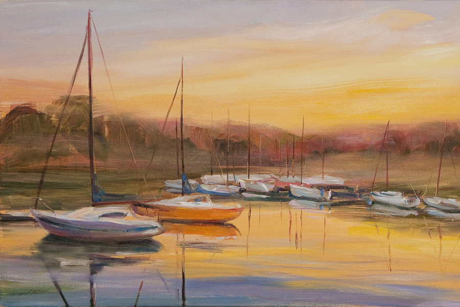 – Zakochałam się w tym miejscu, spotkałam kapitalnych ludzi, z jednej strony pasjonatów- żeglarzy z Podkarpacia i Polski, z drugiej bieszczadzkich niespokojnych duchów. Po czasie fascynacji kwiatami, portretami, teraz jestem na etapie pejzaży. Na moje zmysły najbardziej działa Solina, ale pewnie za jakiś czas zamarzą mi się inne bieszczadzkie pejzaże. Ciągle jeszcze nie namalowałam wszystkiego, co od kilku lat codziennie widzę z okien mojego domu. I ciągle nie mogę się nadziwić, tej różnorodności świateł, kolorów, cieni, każdego dnia, o każdej porze roku, ciągle mnie coś zaskakuje.