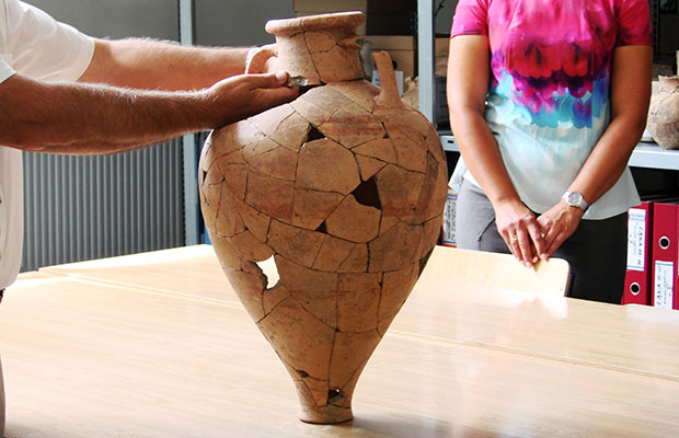 Rozbitą amforę znaleziono w zolniku, czyli charakterystycznym dla grodzisk kręgu scytyjskiego miejscu ofiarnych praktyk i uczt. Obok niej leżało duże skupisko kości zwierząt, prawdopodobnie świni lub dzika, co pozwala stwierdzić, że odbywała się tu uczta. Rozbitą amforę przez dwa dni sklejały doktorantki Ewelina Tokarczyk i Joanna Adamik. – Emocje przy sklejaniu były ogromne – przyznały.