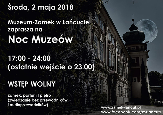 W tym roku rzeszowska Noc Muzeów rozpocznie się wieczorem 18 maja. Za darmo będzie można zwiedzać muzea i galerie. Muzeum-Zamek Łańcut zaprasza jednak na Noc Muzeów dwa tygodnie wcześniej. Dawną rezydencję Potockich będzie można zwiedzać już 2 maja. Turystom udostępniona zostanie ekspozycja parteru i pierwszego piętra Zamku.