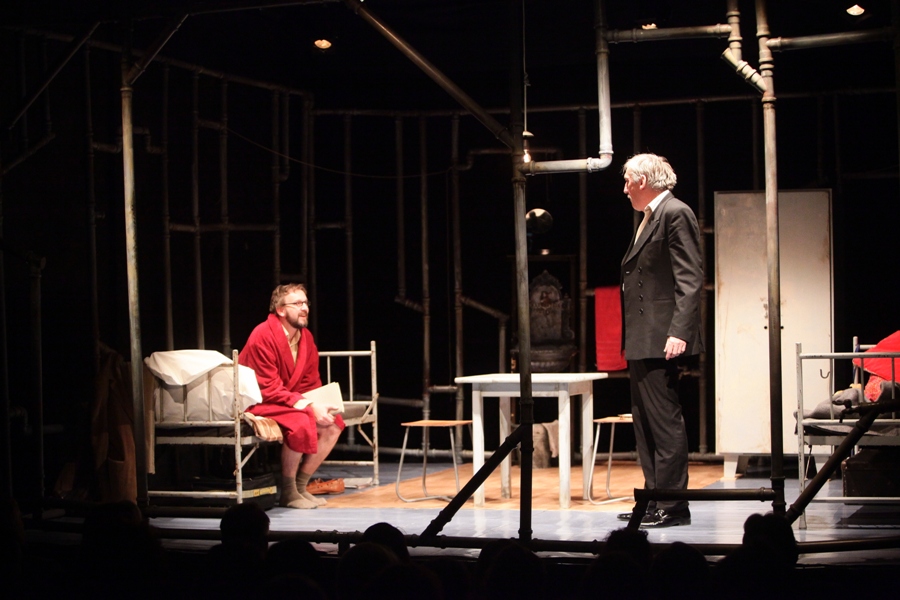 Zapewne nigdzie indziej, poza tą małą, pozbawioną okien sutereną, nie spędzaliby choćby godziny w swoim towarzystwie. Ale mimo różnic żyją w symbiozie. Są od siebie zależni. XX opija współlokatora z herbaty, objada z konserw i nie płaci swojej części czynszu. AA traktuje towarzysza jak obiekt swoich badań i poszukiwań niewolnika idealnego. Znaczący jest też czas, gdy poznajemy bohaterów – sylwestrowa noc, która jest symbolem okresu przejściowego, odejściem starego i przyjściem nowego. I pomimo kilku akcentów komicznych, nie da się zapomnieć, że postaci Mrożka są tragiczne, bo w gruncie rzeczy „Emigranci” to sztuka o wolności, która – bez względy na formy, w jakich się objawia – zawsze wymaga od człowieka ceny najwyższej. Mrożek pisząc tę sztukę w 1974 roku postawił pytania, które niezmiennie są aktualne: o granice wolności, o to czy istnieje w ogóle szansa, by jednostka wyzwoliła się z więzów społecznych i narodowych. Dlatego też po spektaklu długo jeszcze towarzyszy plątanina sprzecznych uczuć, że to i śmieszne, i straszne.