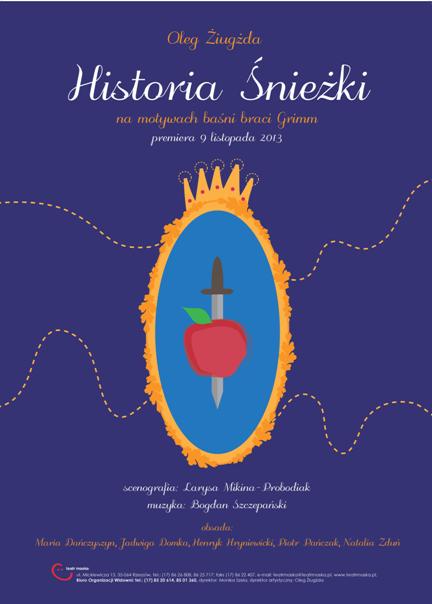Teatru Maski „Historia Śnieżki” zachowana zostanie ta dwubiegunowość i prostota uniwersalnej historii o pięknej Śnieżce, która musi przeciwstawić się złośliwościom zazdrosnej macochy. Ale opowieść braci Grimm to przede wszystkim źródło wielkiej inspiracji dla twórców teatralnych do realizowania własnych, oryginalnych reinterpretacji w postaci autorskich przedstawień teatralnych.