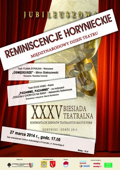 27 marca w przemyskim Centrum Kulturalnym odbędzie się prezentacja dwóch spektakli wyróżnionych podczas XXXV Biesiady Teatralnej – Konfrontacji Zespołów Teatralnych Małych Form w Horyńcu-Zdroju. Publiczność będzie miała okazję obejrzeć „Osmędeuszy” Teatru Pijana Sypialnia oraz „Padamme, Padamme” Teatru Ecce Homo.