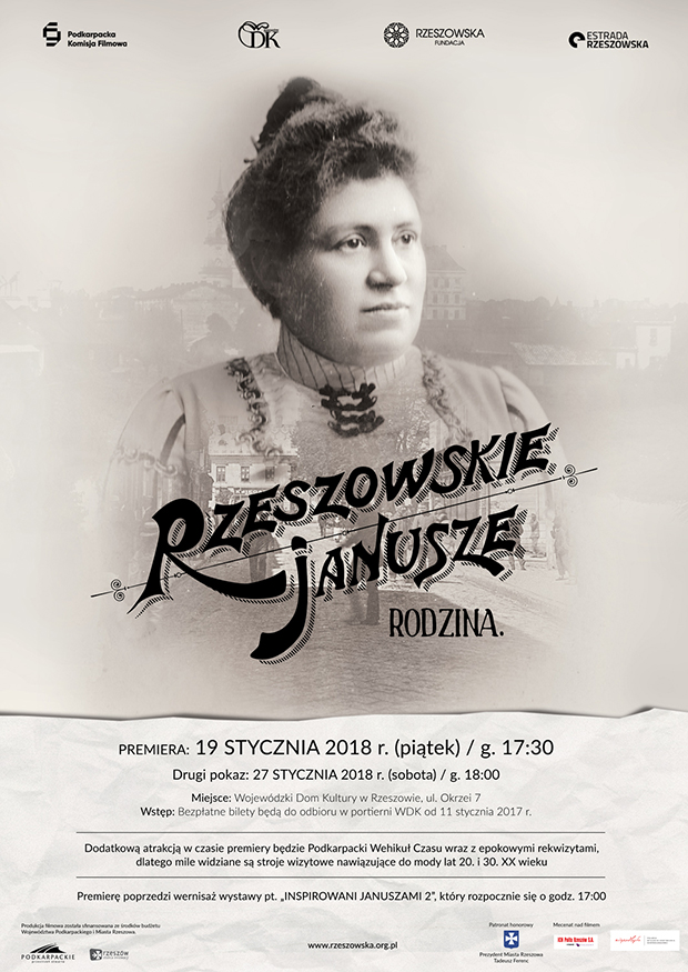 Premiera filmu „Rzeszowskie janusze. Rodzina” odbędzie się w piątek 19 stycznia 2018 r. o godz. 17:30 w Wojewódzkim Domu Kultury w Rzeszowie przy ul. Okrzei 7. Impreza prowadzona przez Katarzynę Hadałę jest częścią Rzeszowskich Obchodów Setnej Rocznicy Odzyskania Niepodległości Rzeczypospolitej Polskiej. Oprócz premiery odbędzie się w WDK drugi pokaz filmu w sobotę 27 stycznia 2018 r. o godz. 18:00. Bezpłatne bilety na oba pokazy będą do odbioru w portierni WDK od 11 stycznia 2017 r. Liczba miejsc jest ograniczona.