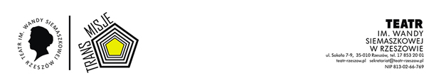 To pierwsza edycja festiwalu, który został powołany przez teatry sześciu państw. Co roku będzie odbywał się w innym kraju, ale startuje w Rzeszowie, ponieważ to właśnie tu, w głowie Jana Nowary, dyrektora Teatru im. W. Siemaszkowej powstał pomysł tego wydarzenia. Wraz z rzeszowskim teatrem Festiwal Trans/Misje powołali: Państwowy Teatr w Koszycach, Narodowy Teatr Morawsko-Śląski w Ostrawie, Teatr im. Mihála Csokonaiego w Debreczynie, Narodowy Ukraiński Teatr Dramatyczny im. Marii Zańkowieckiej we Lwowie, Teatr Królewski w Trokach oraz Muzeum-Zamek w Łańcucie w roli partnera honorowego w celu budowania wspólnej przestrzeni dla wymiany idei i wartości. Tytuł pierwszej edycji brzmi: „1918. Koniec i początek”.