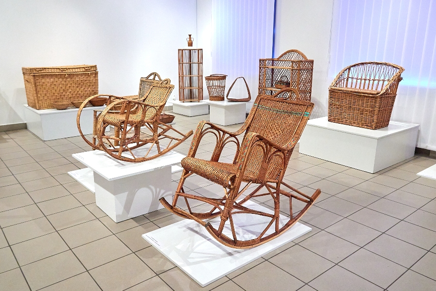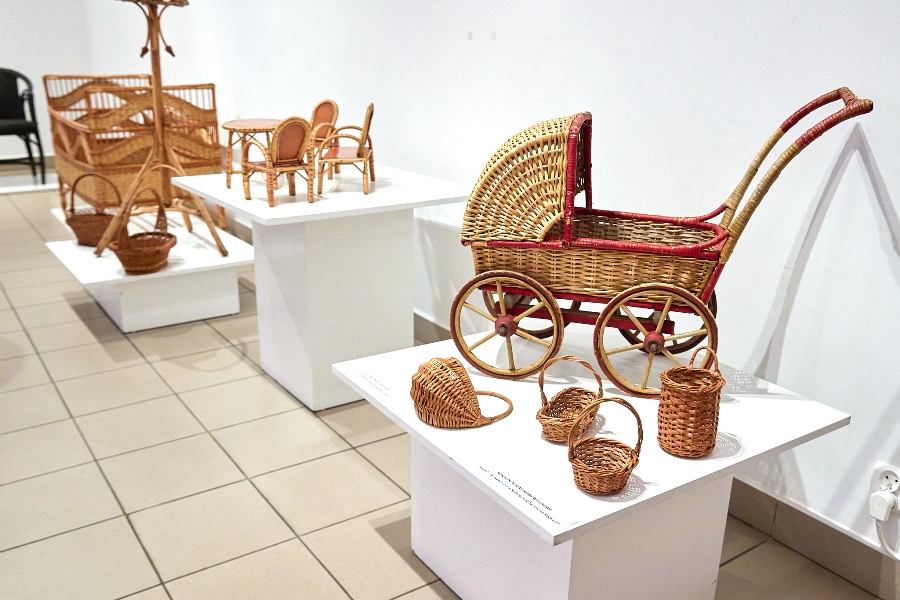 Na wystawie jest ponad 30 historycznych przedmiotów z wikliny, wiele przedwojennych. Piękne krzesła, fotele bujane, stoliki, taborety, łóżeczko do spania, zabawki dla dzieci, koszyki na święconkę, kwietniki, kufry i etażerka.