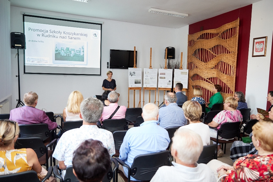 Jak ogromne znaczenie miała Szkoła Koszykarska w Rudniku nad Sanem, przypomniała na wernisażu dr Anna Feliks, kuratorka Muzeum Wnętrz w Otwocku Wielkim i autorka wykładu – „Jak w końcu XIX wieku swe wyroby promowała Szkoła Koszykarska w Rudniku”.