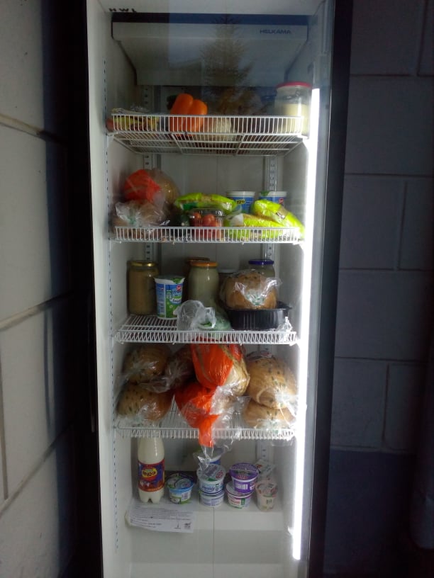 Do lodówki przed siedzibą stowarzyszenia „Zupełne dobro” przy ulicy Szopena 59 można przynosić m.in. owoce, warzywa, makarony, mąkę, cukier i gotowe dania, takie jak zupy czy smażone kotlety.