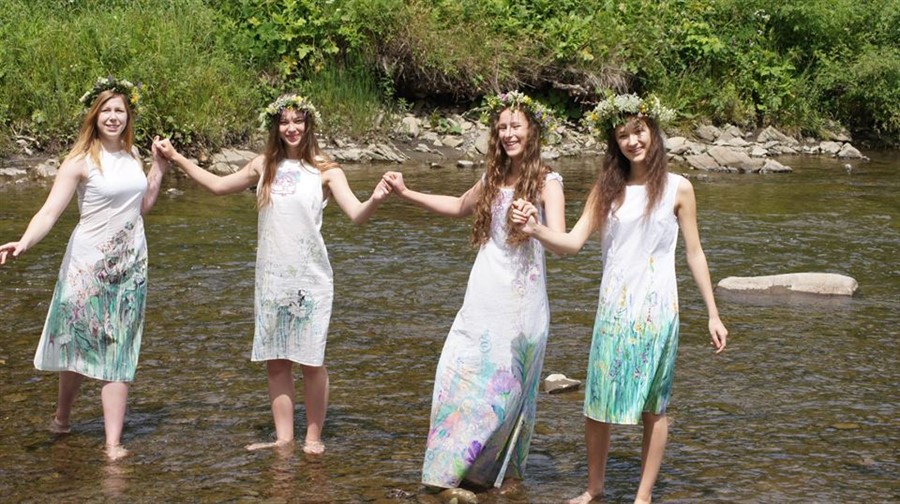 Do pracowni można przynieść także własną sukienkę o wybranym kroju, której malarka nada bajeczny charakter, w sam raz na letnie i wiosenne dni.