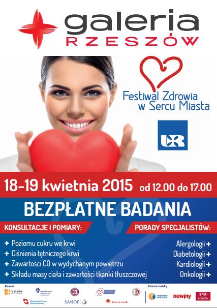 Bezpłatne badania i konsultacje oraz możliwość skorzystania z porad lekarzy specjalistów. Tak zapowiada się Festiwal Zdrowia w Sercu Miasta. Kolejna edycja profilaktyczno-edukacyjnej akcji odbędzie się już 18 i 19 kwietnia w Galerii Rzeszów.
