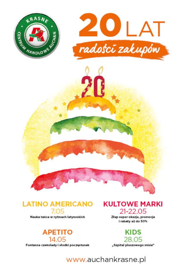 Pokazy i warsztaty tańca latynoamerykańskiego, fontanna czekolady czy zajęcia edukacyjne dla najmłodszych – między innymi takie atrakcje czekają w maju na gości Centrum Handlowego Auchan Krasne. Z okazji 20. urodzin Centrów Handlowych Auchan w Polsce w wybranych sklepach będzie można też skorzystać z wyjątkowych promocji i rabatów. Udział we wszystkich atrakcjach jest bezpłatny!