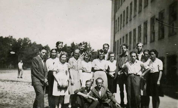 Maturzyści przed budynkiem Państwowego Gimnazjum i Liceum w Stalowej Woli 1946/1947 Fot. z archiwum Muzeum Regionalnego w Stalowej Woli