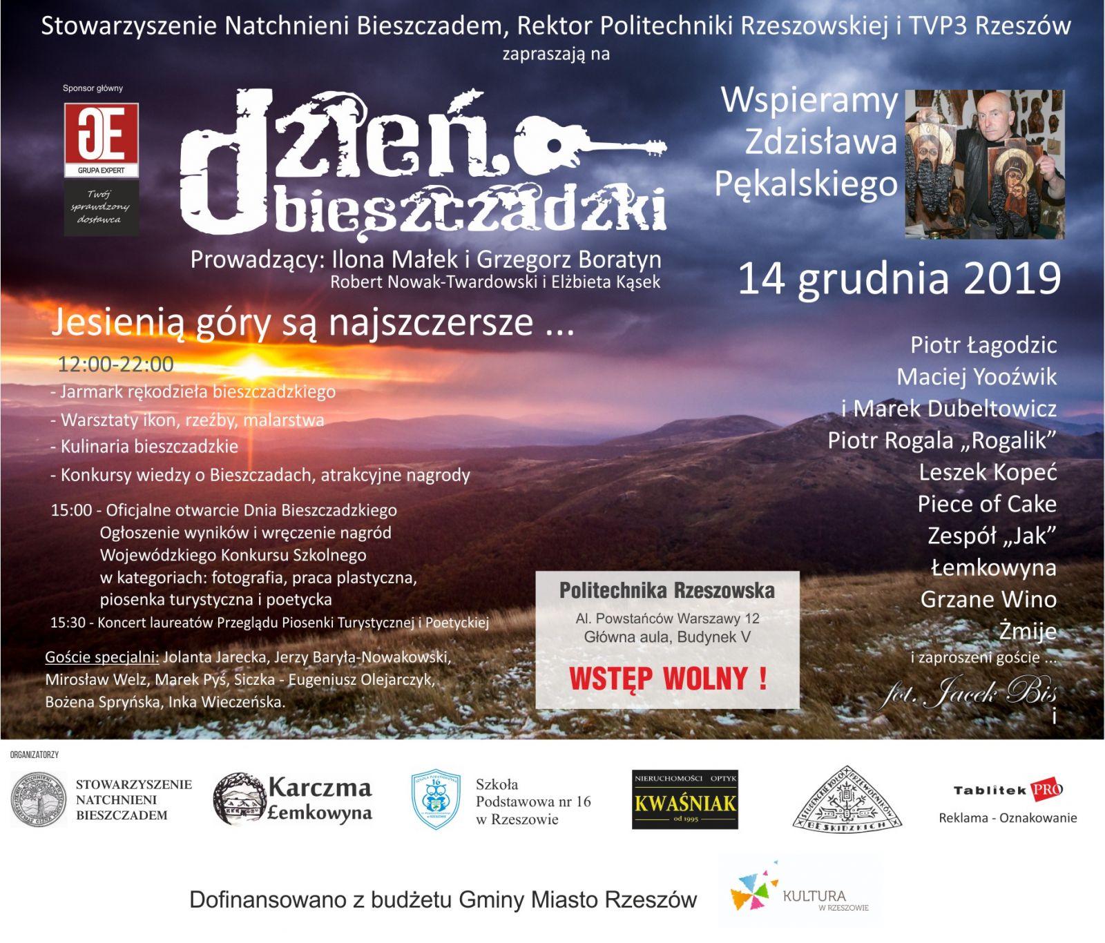 Impreza wypełniona jest koncertami, spotkaniami i warsztatami z bieszczadzkimi artystami. Towarzysza jej prezentacje, degustacje i konkursy. Już od godz. 12. trwać będzie jarmark rękodzieła bieszczadzkiego, warsztaty ikon, rzeźby malarstwa. Około 20 wystawców zaprezentuje lokalne wyroby i kulinaria. Kto popisze się wiedzą o Bieszczadach może wygrać atrakcyjne nagrody. Wykonane samodzielnie świąteczne ozdoby sprzedawać będą uczniowie Szkoły Podstawowej nr 16 w Rzeszowie, by wspomóc akcję na rzecz Pękalskiego.