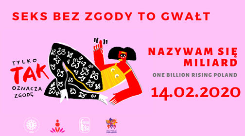 Kampania „One Billion Rising 2020” w Polsce znana jest jako „Nazywam się Miliard 2020”. W kilkudziesięciu miejscowościach w Polsce, w tym w Rzeszowie, w Święto Zakochanych, kobiety i mężczyźni wspólnie zatańczą na znak protestu przeciwko przemocy. Tegoroczne hasło ogólnopolskiej akcji to: Seks bez zgody to gwałt. Tylko tak oznacza zgodę.