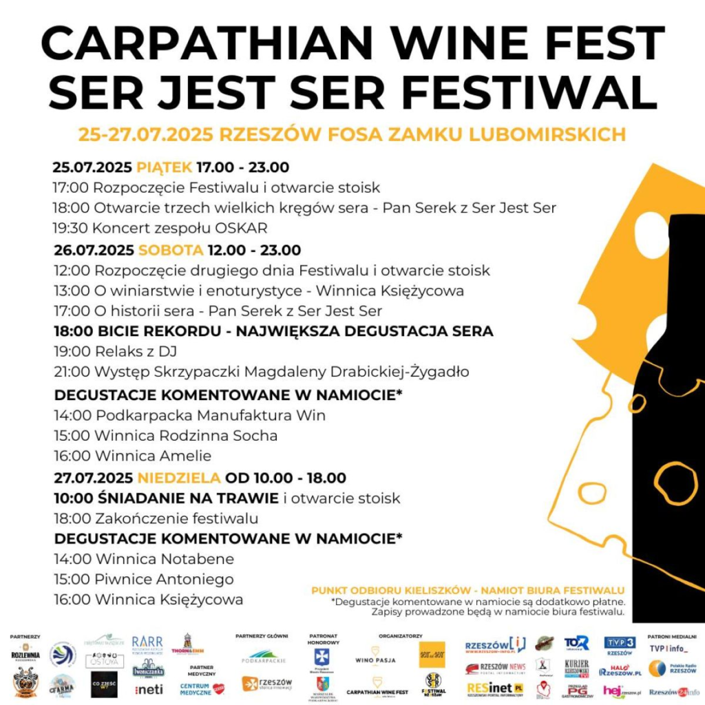 W ostatni weekend lipca Rzeszów stanie się stolicą smaku, aromatu i dobrej zabawy, za sprawą festiwalu wina i sera. Zapraszamy na wyjątkowe wydarzenie kulinarne, jakim jest Carpathian Wine Fest – Ser jest Ser Festiwal, czyli trzy dni przepełnione winem, serem i niezwykłą atmosferą. To będzie prawdziwa uczta dla podniebienia! A oto co Was czeka w ostatni weekend lipca.