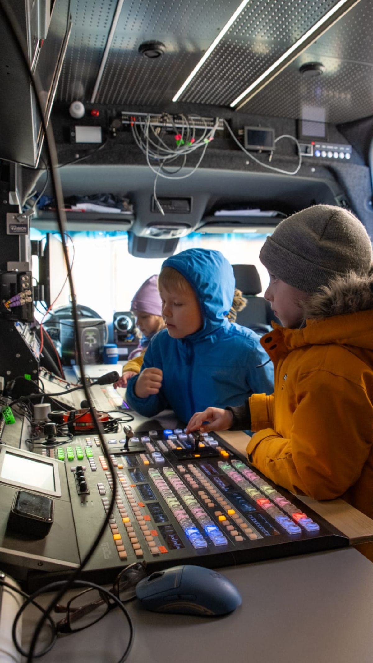 Po wykładzie na studentów DUT czekały dodatkowe atrakcje. TVP Rzeszów udostępniła do zwiedzania wnętrze wozu transmisyjnego – dzieci mogły zobaczyć z bliska stanowiska realizatora i operatorów, poznać sprzęt, a przede wszystkim doświadczyć, że telewizja to znacznie więcej niż ładne obrazy. Uczestnicy zajrzeli też w „kosmos” dzięki dodatkowym stanowiskom VR, gdzie wirtualne niebo, planety i galaktyki były na wyciągnięcie ręki. Na starcie semestru każdy uczestnik otrzymał także wyprawkę studencką: indeks oraz gadżety DUT, które towarzyszyć będą w trakcie kolejnych spotkań.