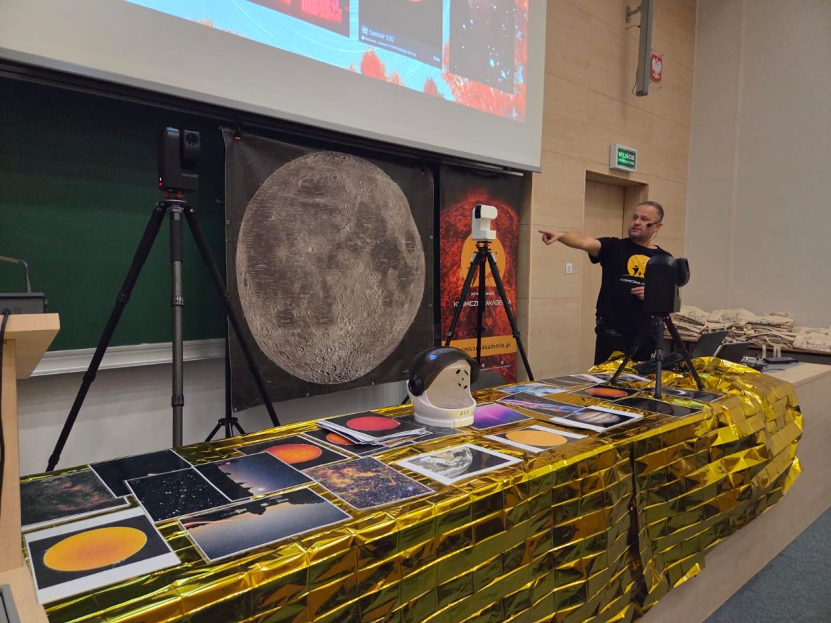 Inaugurację otworzył wykład Roberta Nowakowskiego pt. „Smart astronomia z teleskopem Seestar”. Uczestnicy odbyli barwną, międzygalaktyczną podróż po Wszechświecie i przekonali się, jak współczesne rozwiązania wspierają odkrywanie tajemnic nieba. W przystępny, atrakcyjny sposób zaprezentowano Seestar – niewielki, inteligentny teleskop, który samodzielnie odnajduje Słońce, Księżyc, planety, gromady gwiazd i galaktyki, a podgląd wyświetla na ekranie tabletu lub telefonu. Dzieci zobaczyły, że „smart” astronomia obserwacyjna może być prosta i pełna frajdy, a każdy – niezależnie od wieku – może poczuć się odkrywcą kosmosu.