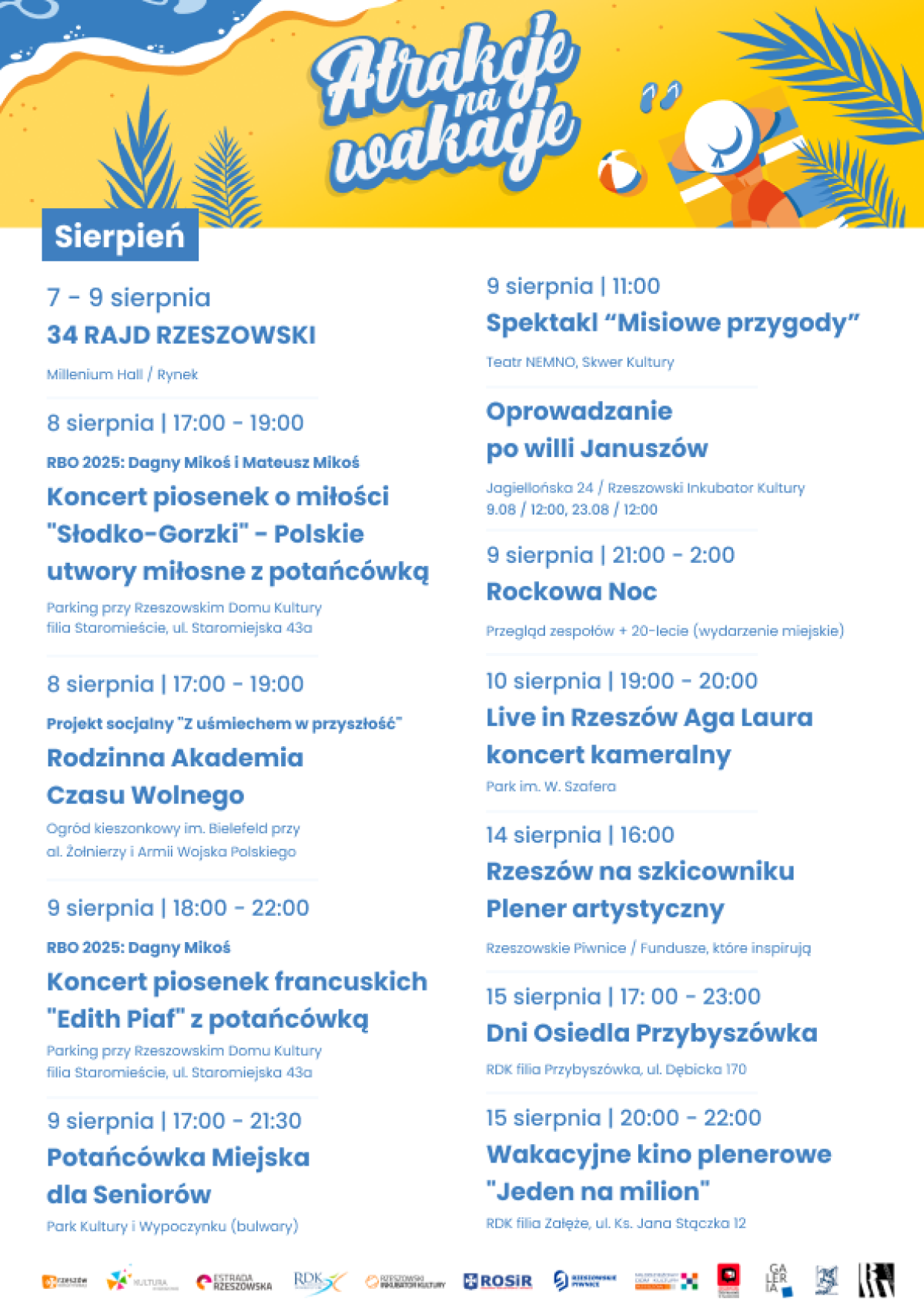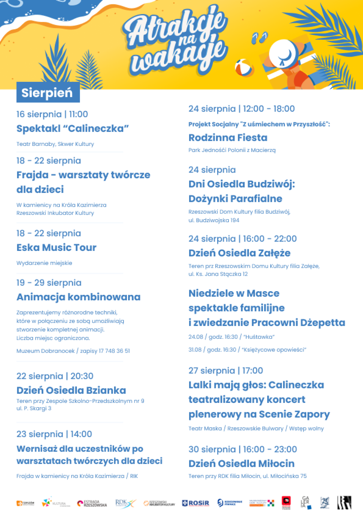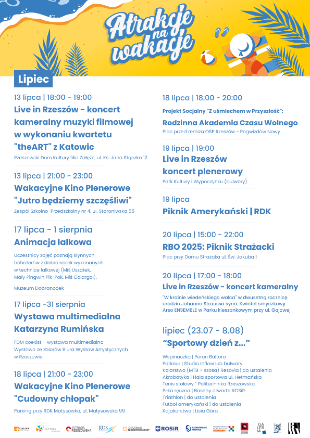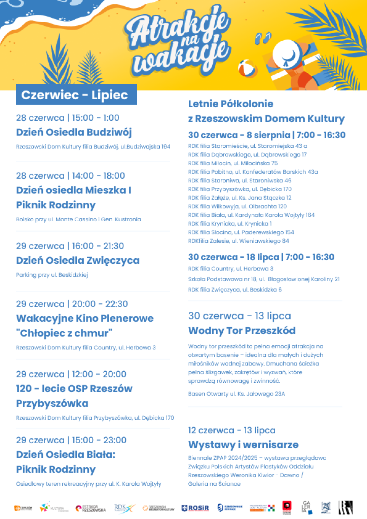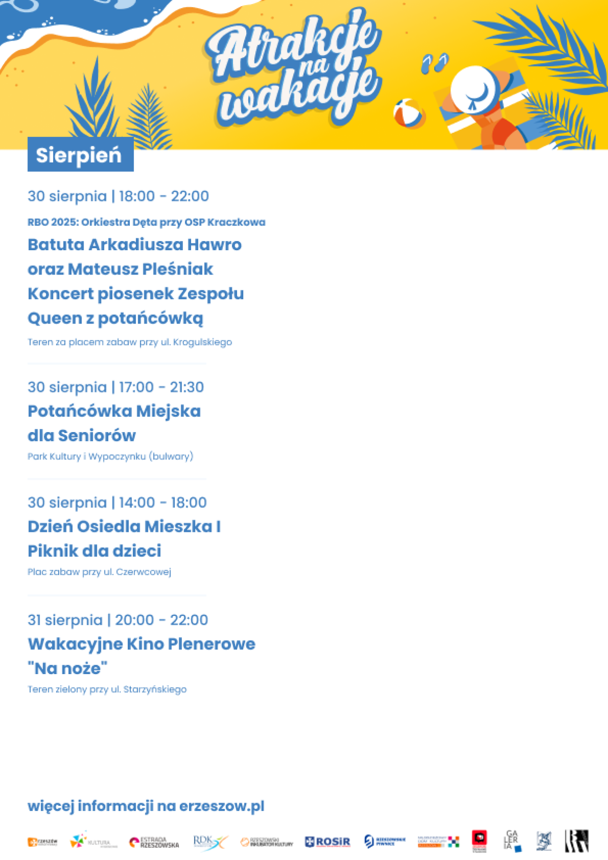 Pełny program „Atrakcji na wakacje” dostępny będzie na stronie internetowej urzędu miasta www.erzeszow.pl. Zachęcamy również do śledzenia mediów społecznościowych urzędu miasta oraz miejskich wydziałów i jednostek.