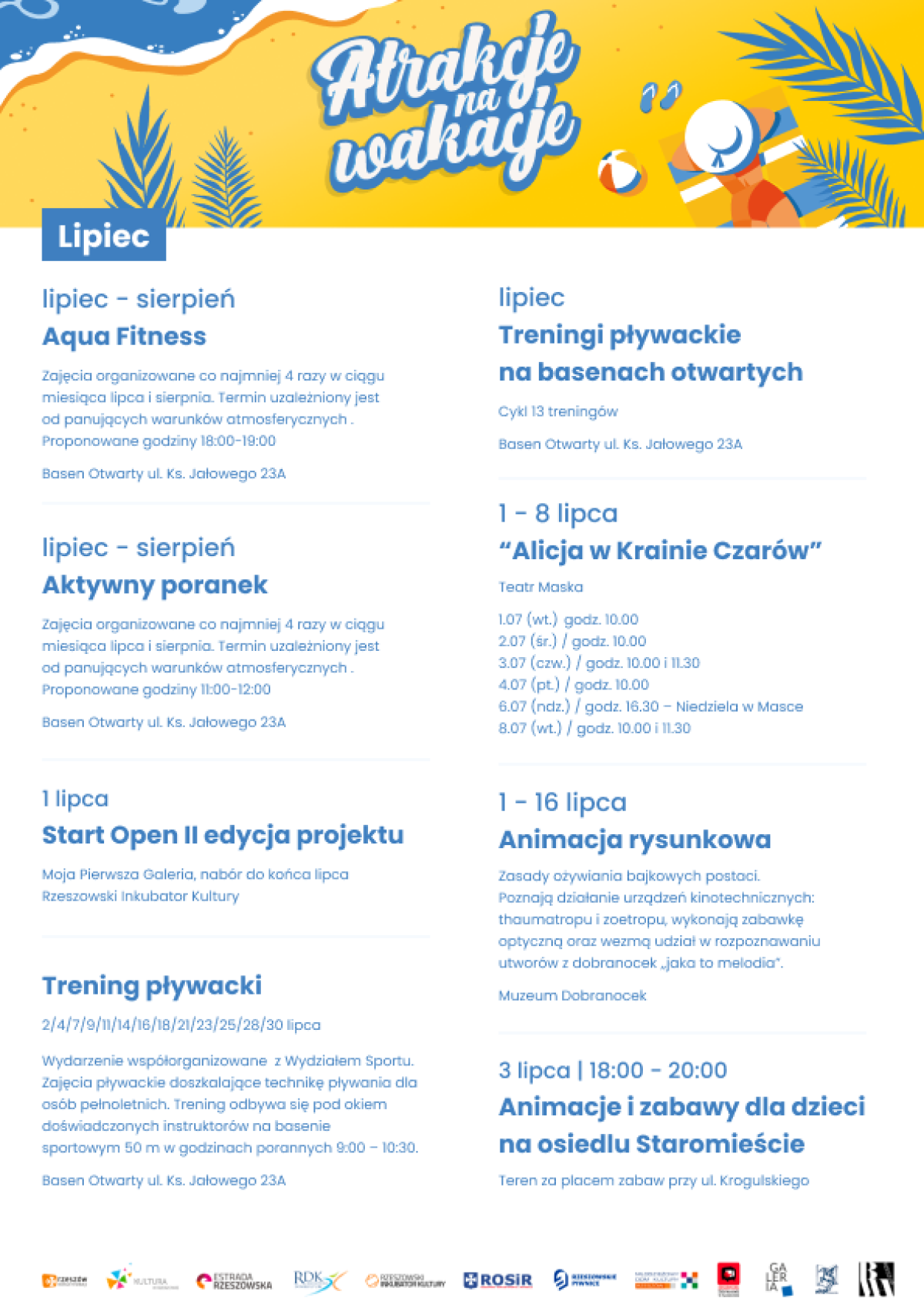 Podczas wakacji w Rzeszowie nie zabraknie atrakcji sportowych. – Szczególną atrakcją, którą przygotowaliśmy na naszych odkrytych basenach jest wodny tor przeszkód. W poniedziałki, środy i piątki prowadzimy tam także w godzinach porannych, pod czujnym okiem trenerów, profesjonalne treningi pływackie. ROSiR to nie tylko sport i rekreacja, ale w tym roku także edukacja. 4 i 5 lipca zaplanowaliśmy „Bezpieczne wakacje nad wodą z ROSIR-em, Wydziałem Polityki Społecznej i rzeszowskim WOPR-em. Będą to aktywne zajęcia, które pokażą jak należy zachować się w sytuacjach kryzysowych nad wodą.
