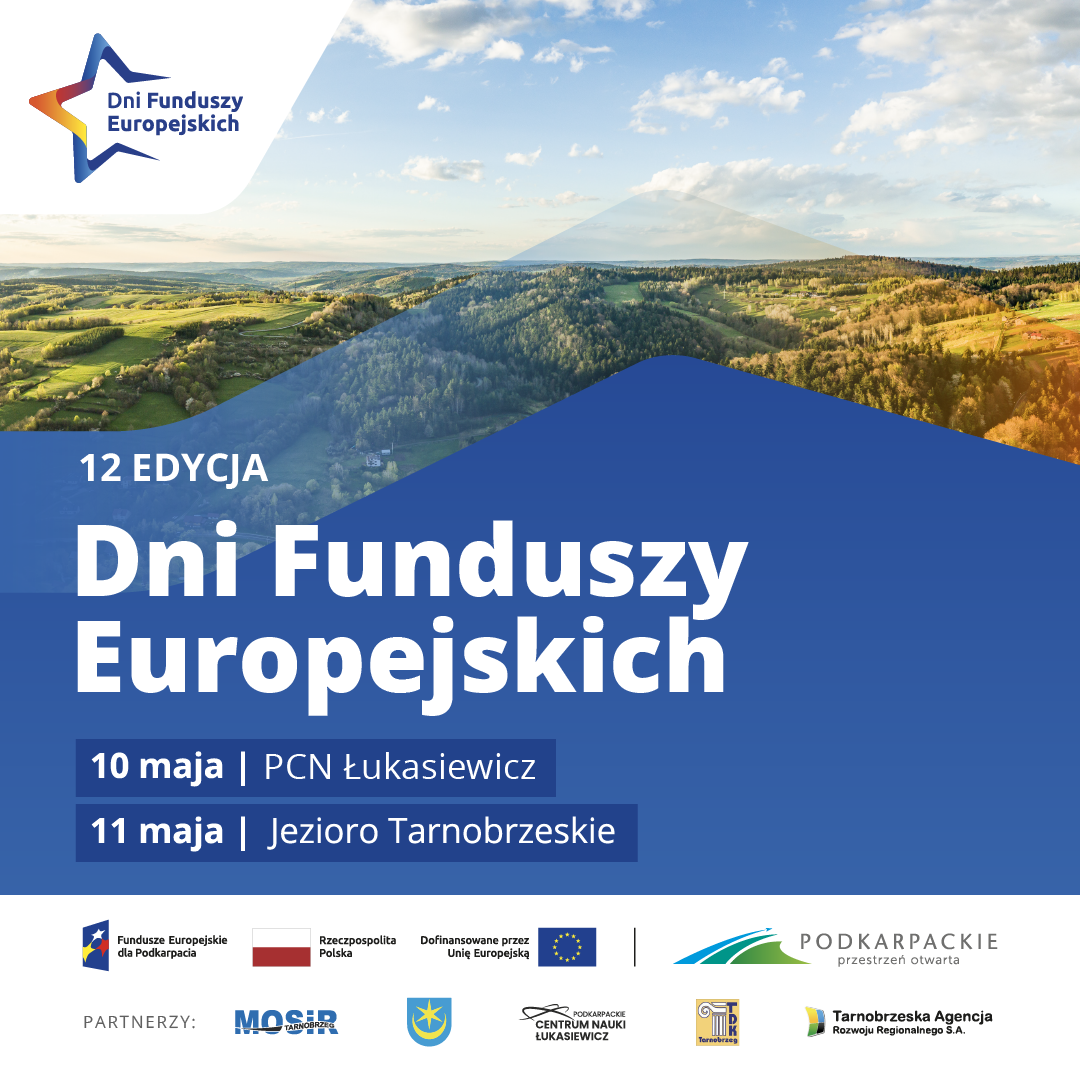 Przed nami Dni Funduszy Europejskich. Ogólnopolskie święto funduszy odbędzie się w tym roku dniach 9-11 maja. Jak co roku Województwo Podkarpackie organizuje z tej okazji kilka atrakcji, z których główne odbędą się w Podkarpackim Centrum Nauki Łukasiewicz w Jasionce i nad Jeziorem Tarnobrzeskim.