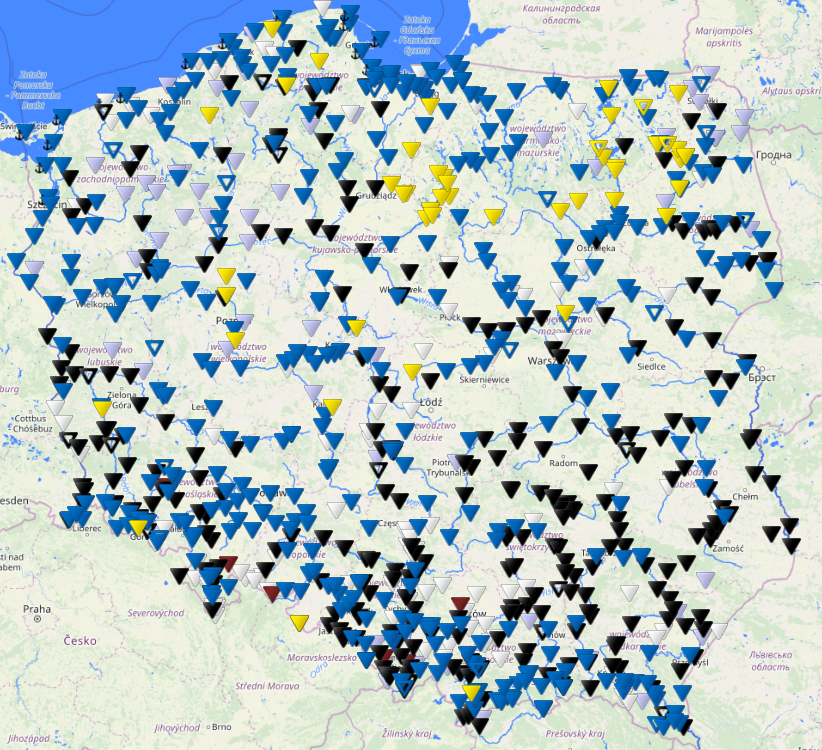 Pod kątem rozwoju sytuacji suszowej, na rzekach w Polsce notujemy stopniowy przyrost liczby stacji z przepływami poniżej wartości SNQ (średniego niskiego przepływu z wielolecia). Obecnie notujemy 23 stacje z przepływem poniżej SNQ.