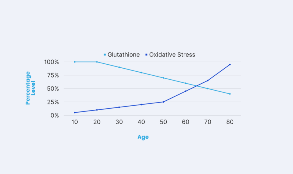 Badania wykazały, że wyższy poziom glutationu w organizmie może pomóc zmniejszyć szkodliwe skutki stresu oksydacyjnego, który jest głównym czynnikiem przyczyniającym się do starzenia się i związanych z nim chorób. Ogólnie rzecz biorąc, wyższy poziom glutationu może prowadzić do zdrowszego i przyjemniejszego życia.