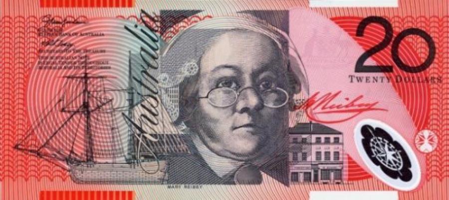 Mary Reibey, przodkini Jamesa Katzena na australijskiej 20 dolarówce.