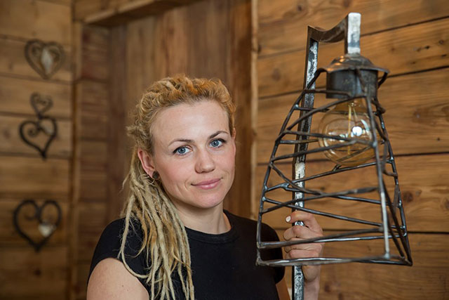 W kuźni rządzi Agnieszka. Pomaga jej dwóch pracowników. Czyszczą, spawają. Gięciem, wykuwaniem i kształtowaniem metalu zajmuje się ona. – W pewnym momencie musieliśmy zdecydować, czy pozostać przy małej pracowni metaloplastyki, czy rozbudowywać kuźnię i zatrudnić pracowników – mówi artystka. – Postawiliśmy na rozwój. Oprócz indywidualnych zamówień, tworzę także przedmioty w małych seriach. Nie są takie same, bo to ręczna robota, ale łączy je wspólny projekt. Tak powstają m.in. lampy, misy.