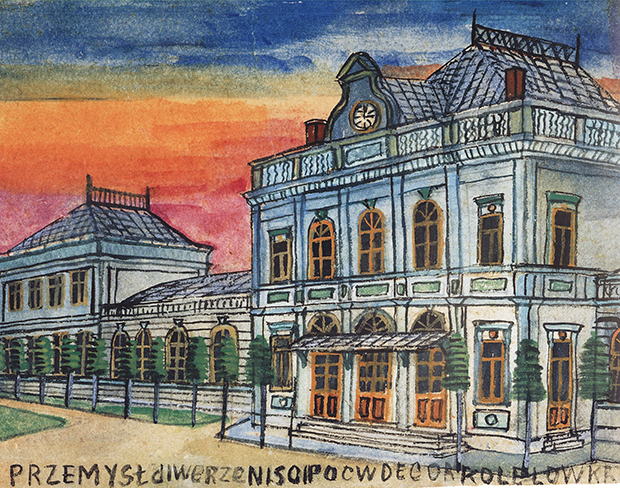 Dworzec kolejowy w Przemyślu, reprodukcja Piotr Droździk, Muzeum Okręgowe w Nowym Sączu
