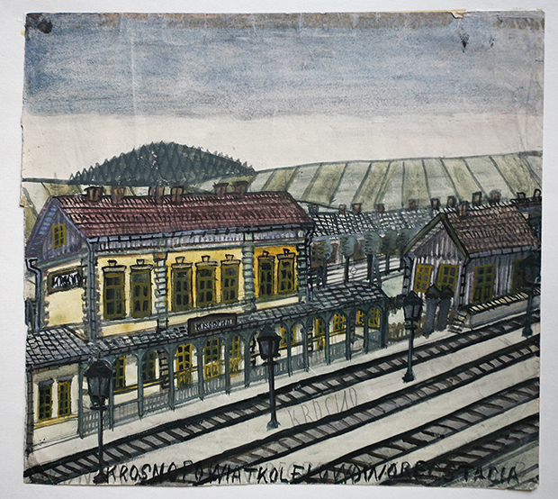 Dworzec kolejowy w Krośnie, reprodukcja Piotr Droździk, Muzeum Okręgowe w Nowym Sączu