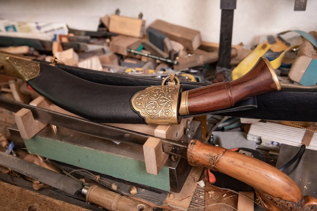 Sprowadzam z całego świata niezwykłe materiały, takie jak kamienie półszlachetne, meteoryty, lakę, rogi (np. błotnego bawołu z Kambodży), kości, skóry (np. opisanej wyżej raji) oraz drewno egzotyczne. Każdy detal białej broni pod względem wyglądu i techniki wykonania musi zgadzać się z realiami danej epoki. Tak zacząłem gromadzić rogi polskich zwierząt. Wisiały w pracowni na sznurze. Pewnego razu, spiesząc się, strąciłem je do wiadra z wodą, w której – przez zapomnienie – leżały przez tydzień. Po tygodniu stwierdziłem, że róg stał się miękki i podatny na kształtowanie. W ten sposób nauczyłem się wykonywania prochownic do strzelb skałkowych, które robi się ze spłaszczonego rogu. Nierzadko pochwa katany wykonana jest z bydlęcej kości (wołowej, końskiej), pokrytej rzeźbą dekoracyjną lub figuralną.