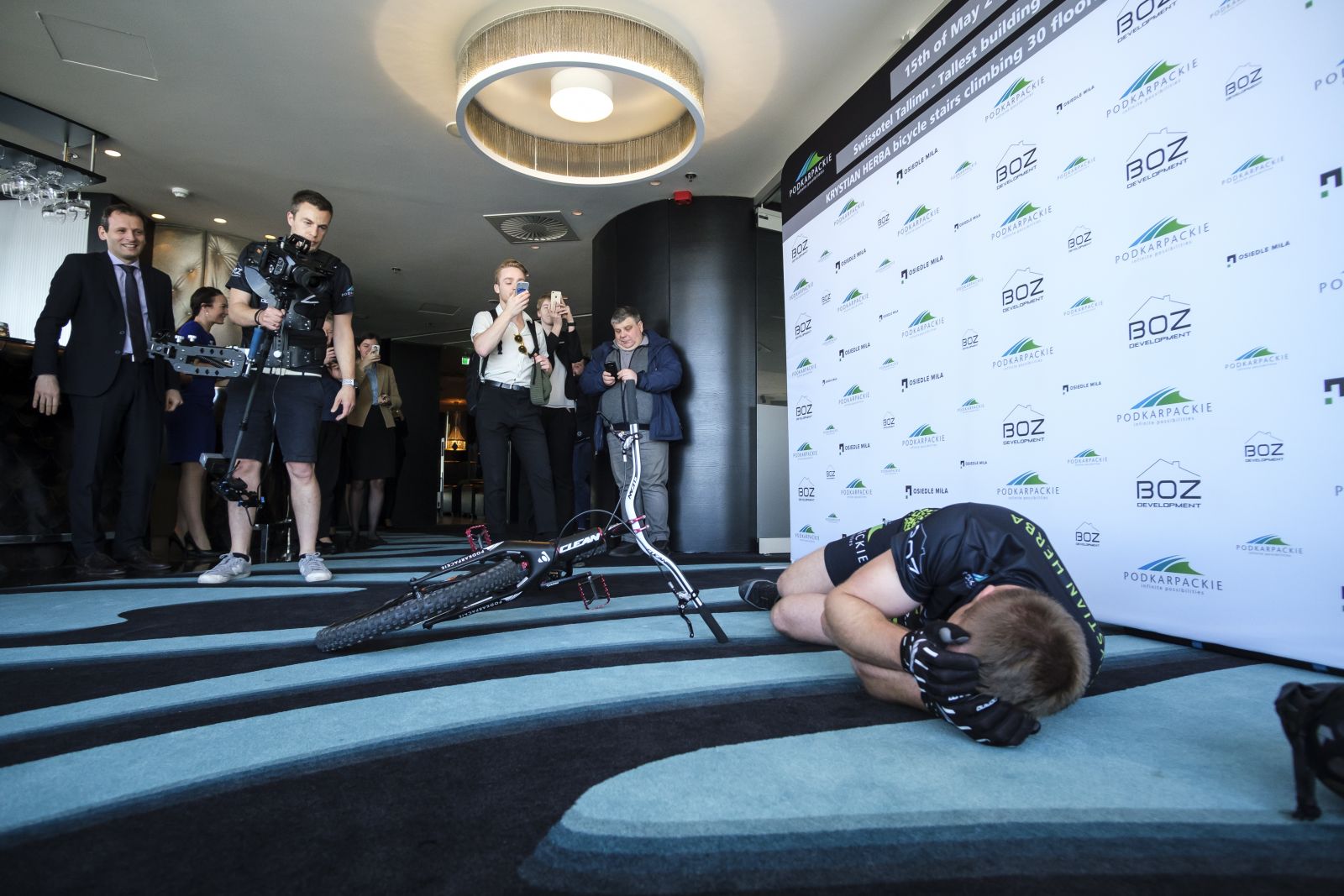 Krystian Herba wskoczył na 30-piętrowy wieżowiec w Estonii – Swissotel w Tallinnie. Pokonanie 630 schodów, a tym samym pobicie rekordu, zajęło rzeszowskiemu trialowcowi 8 minut i 52 sekundy.