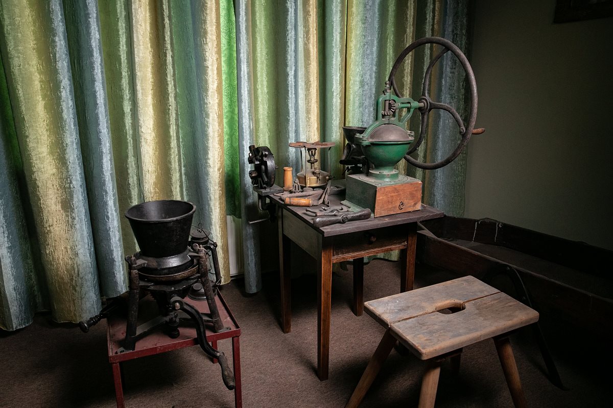 Pan Jerzy Gottman oprowadza mnie po poddaszu kamienicy przy ul. Grunwaldzkiej, gdzie zmagazynował pamiątki po sklepie ojca. Zachowało się nadspodziewanie wiele: począwszy od drzwi wejściowych i witraża z Matką Boską, poprzez dwie zdobione secesyjnym ornamentem kasy „National” produkcji amerykańskiej, dwa miedziane zbiorniki z kranikami służące do przechowywania nafty. Obok rynienka do suszenia kawy i piecyk do jej palenia i młynek z dużym kołem zamachowym do mielenia ziaren. Pozostały także napisy z nazwami działów oraz torebki firmowe. Nieopodal radioodbiornik „Philips”- najnowszy przedwojenny model, ukrywany w sklepie przez całą okupację.