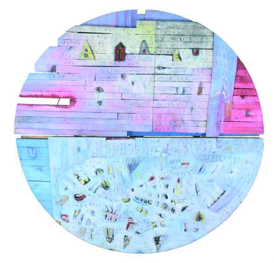 Marek Olszyński, z serii Mapa Wszechświata – niedatowany, technika mieszana na desce & sklejce, średnica 95 cm