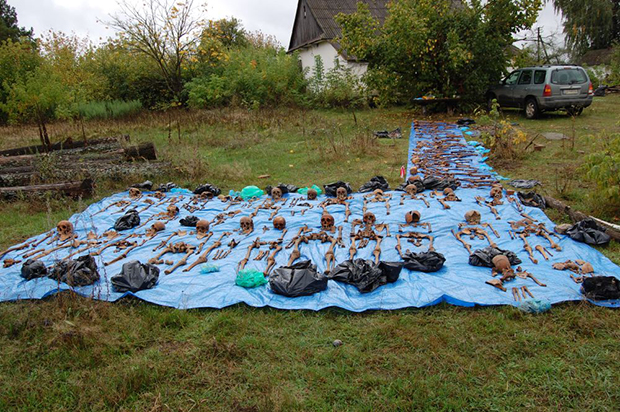 Gaj (pow. kowelski na Wołyniu, rok 2013), ekshumacja szczątków 81 osób zamordowanych przez UPA 30 sierpnia 1943 roku. Fot. Leon Popek / www.ipn.gov.pl