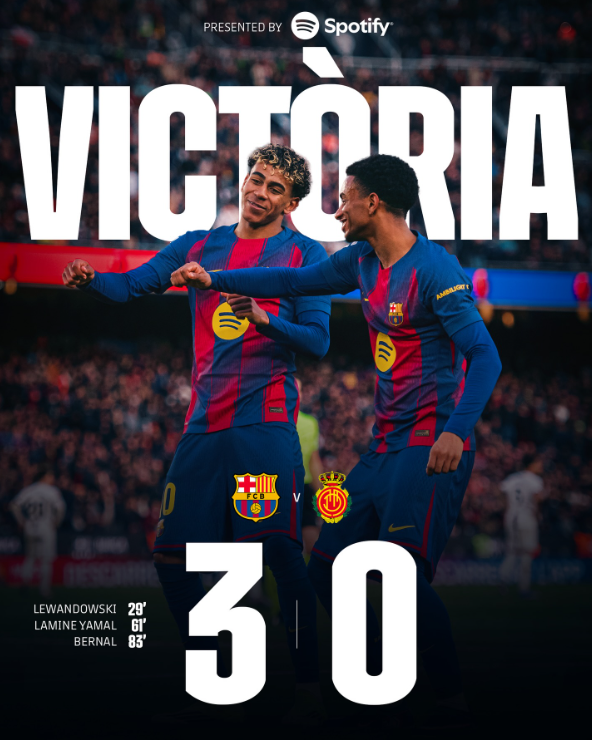 RCD Mallorca przegrała w stolicy Katalonii 0:3, a wynik spotkania otworzył Robert Lewandowski. FC Barcelona rozpoczęła tym meczem serię spotkań z drużynami z dołu ligowej tabeli. Zanim jednak wróci do walki o mistrzostwo, zagra jeszcze w półfinale Copa del Rey.